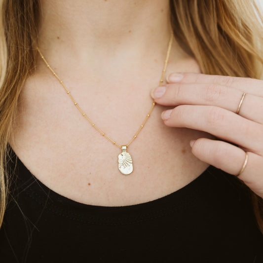 Explore our collection of coastal-inspired necklaces, featuring elegant pendants and timeless chains. From delicate gold-filled strands to meaningful charms like pearls, shells, and sunbursts, each piece is designed to capture the beauty of the shoreline. Perfect for layering or wearing solo, these necklaces offer effortless style with a touch of seaside soul. Handcrafted in Virginia Beach, made to shine wherever you wander.